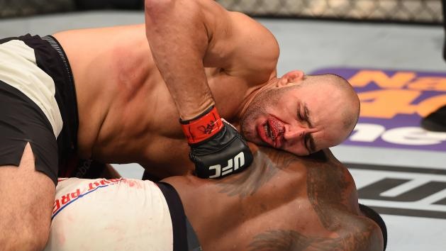 St. Preux started with his hands out, actively moving and looking to parry Glover’s jab. The Brazilian would have none of it and took the Tennessee favorite to the ground. St. Preux stood back up and kneed Glover in the balls (okay, I didn’t predict that) and after the allotted break, pulverized his liver with a powerful kick. Glover survived and St. Preux kept winging his left hook, missing on several potentially fight ending connections by allowing his strikes to crash against Glover’s forearms or slide over top of him. Glover watched for the next body kick, caught it and took St. Preux to the ground where he spent the remainder of the round. When the bell rang at the end of the first, St. Preux was already beginning to tire.